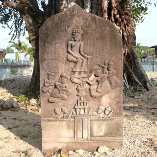 寺院の境内にはセーマー石(結界石)がたくさん立っている。釈迦のさまざまな前生の物語の本生話(ジャータカ物語)に関する絵が彫られている。
