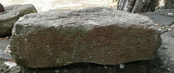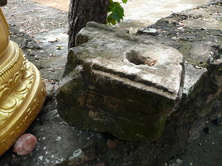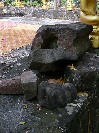 ●概要…現代の仏教寺院の中の塀の上に、クメール遺跡の遺物が置かれていた。