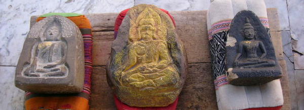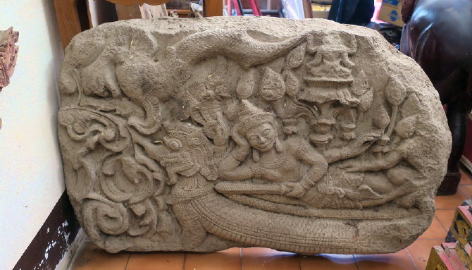 「ふうみん」は、この塔の右手前に置かれていたクメールの遺跡類を見て少なからず衝撃を覚えた。数日前に見たロイエットの猿寺(クープラコーナ)を思い出だしたからだ。