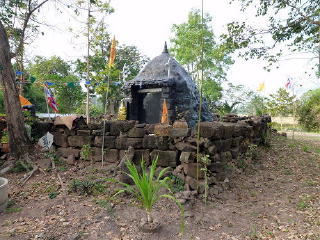 ●一口メモ…遺跡を見た瞬間ガッカリした。祠堂は黒いコールタールのようなもので塗られていたが、この祠堂はクメール時代の建造ではなく、最近素人が遺跡の石を使用して組み上げたものだ。周壁の建造も同様だ。