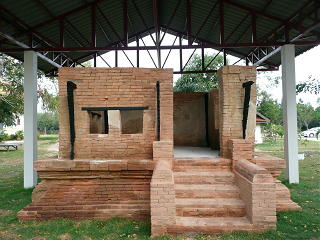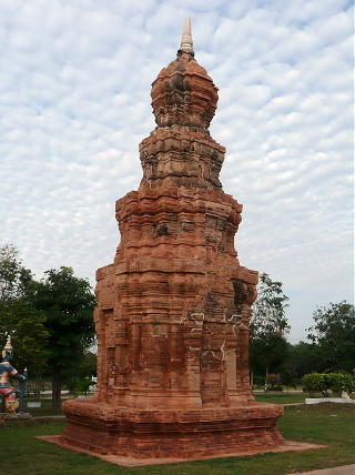 ●概要…仏教寺院(Wat Mueang Chan)の中に、1基のレンガ造りの祠堂が建っている。この約15メートルの高さの祠堂は、つい最近修理されたらしい。