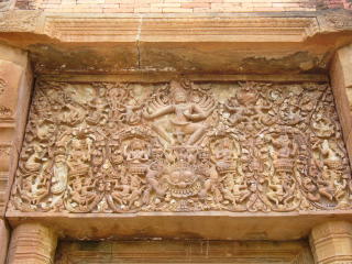 中央祠堂のまぐさ石の神々のレリーフは見応えがある。踊るシヴァ神を中央にドゥルーガ神、ヴィシュヌ神、プラフマー神、ガネーシャ神が彫られている。