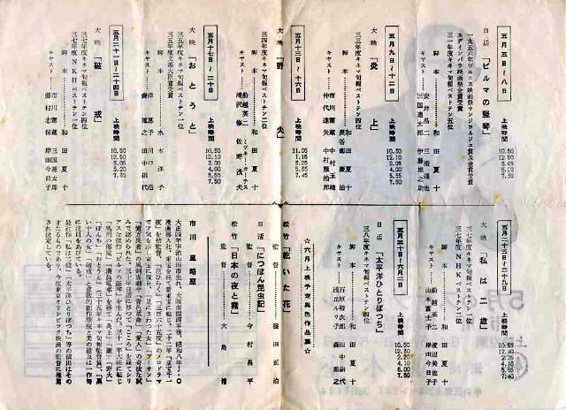 「ビルマの竪琴」、「炎上」、「野火」、「おとうと」、「破戒」、「私は二歳」、