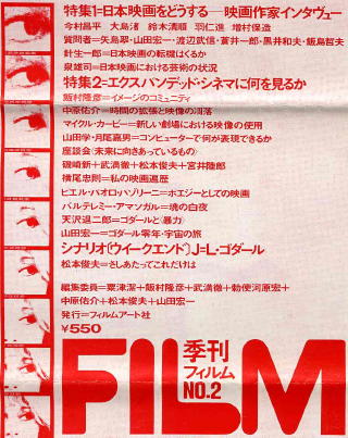 「季刊フィルム」は、草月シネマテークの活動をきっかけとして誕生した芸術的、政治的にもラディカルな雑誌でこの時代の雰囲気をよく感じさせる。