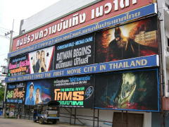 映画の看板の下に止まっているのは、タイ名物のトゥクトゥク。 |