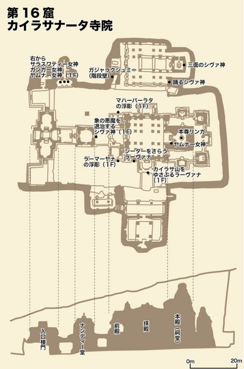 第16窟はカイラーサナータ寺院(Kailasanatha Temple)、あるいはカイラーサ寺院(Kailasa Temple)と呼ばれ、エローラで最も重要な石窟寺院である。エローラすなわちカイラーサナータ寺院と思っている人もいるほどエローラを代表する石窟である。