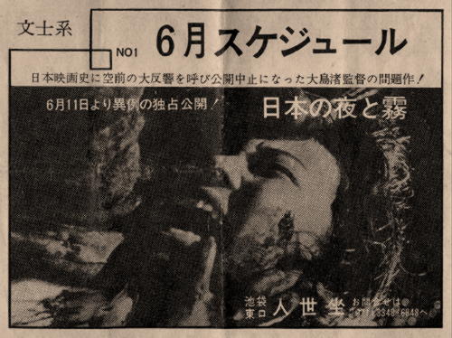 「日本の夜と霧」、大島渚監督、1963年6月11日より人世坐にて上映